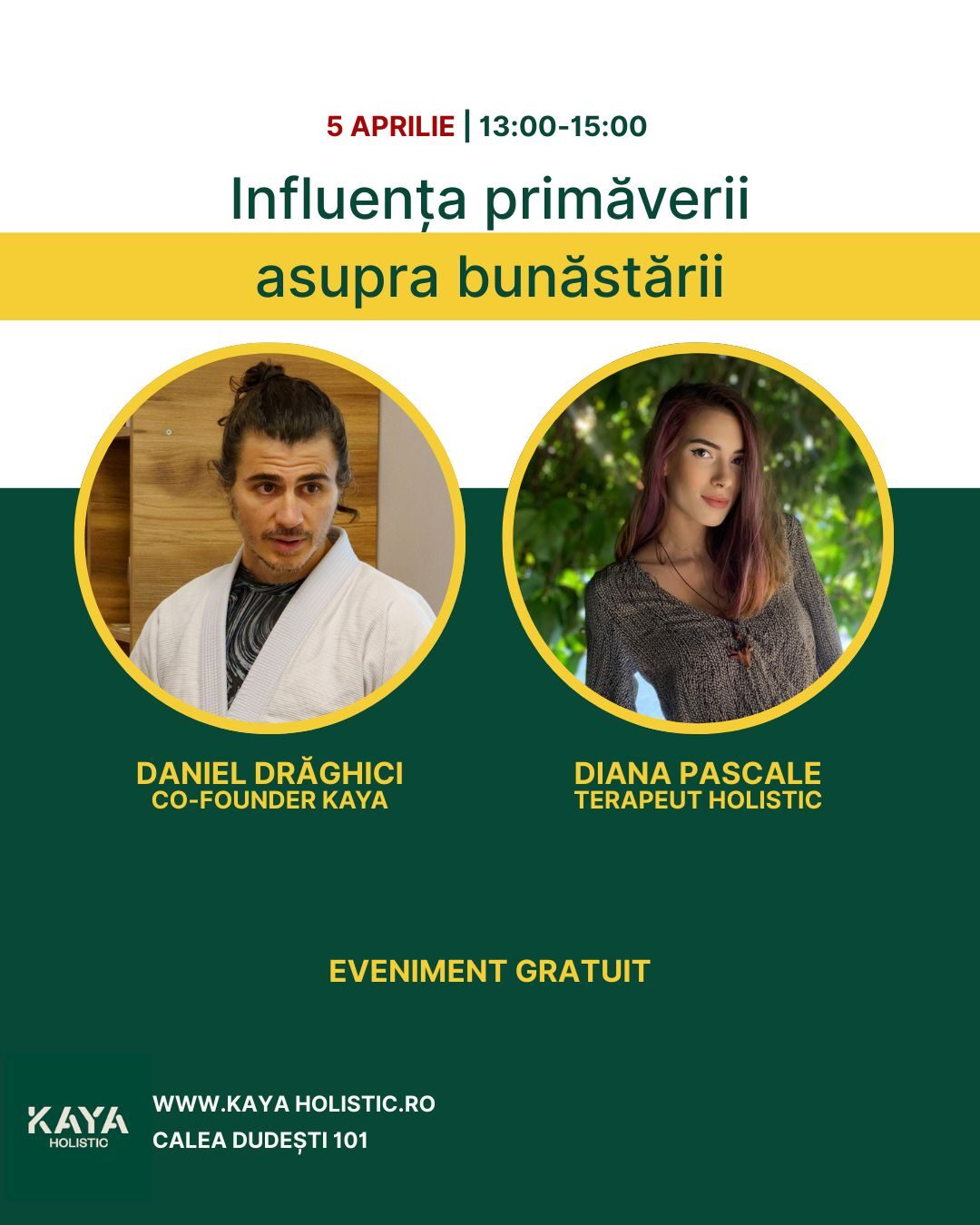 Vino alături de noi la KAYA Holistic, pentru a descoperi cum acest anotimp influențează sănătatea ta fizică, mentală și emoțională. Împreună, vom explora practici holistice care te vor ajuta să te reconectezi cu natura și să îți regăsești armonia interioară.